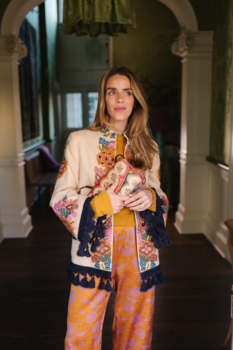 The beauty is in the details: dimensional trims, intricate motifs, sculptural bags, and jewelry that adds warmth and polish. It’s expressive dressing with an elevated point of view, combining color, pattern, and texture in a way that feels collected, thoughtful, and effortlessly chic. Each piece carries its own presence, inviting styling that feels personal rather than precious.