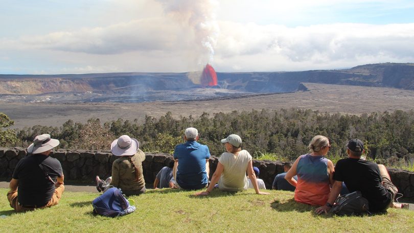 Tourists looking at volcanos in Hawaii