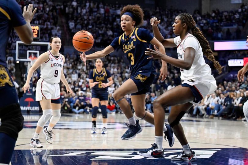 KK Arnold had 12 points, five assists, two steals and one turnover while drawing the defensive assignment on Notre Dame star Hannah Hidalgo. Azzi Fudd added 15 points and Ashlynn Shade finished with 10 points and four assists as UConn won its 35th consecutive game and posted its largest margin of victory against the Fighting Irish.