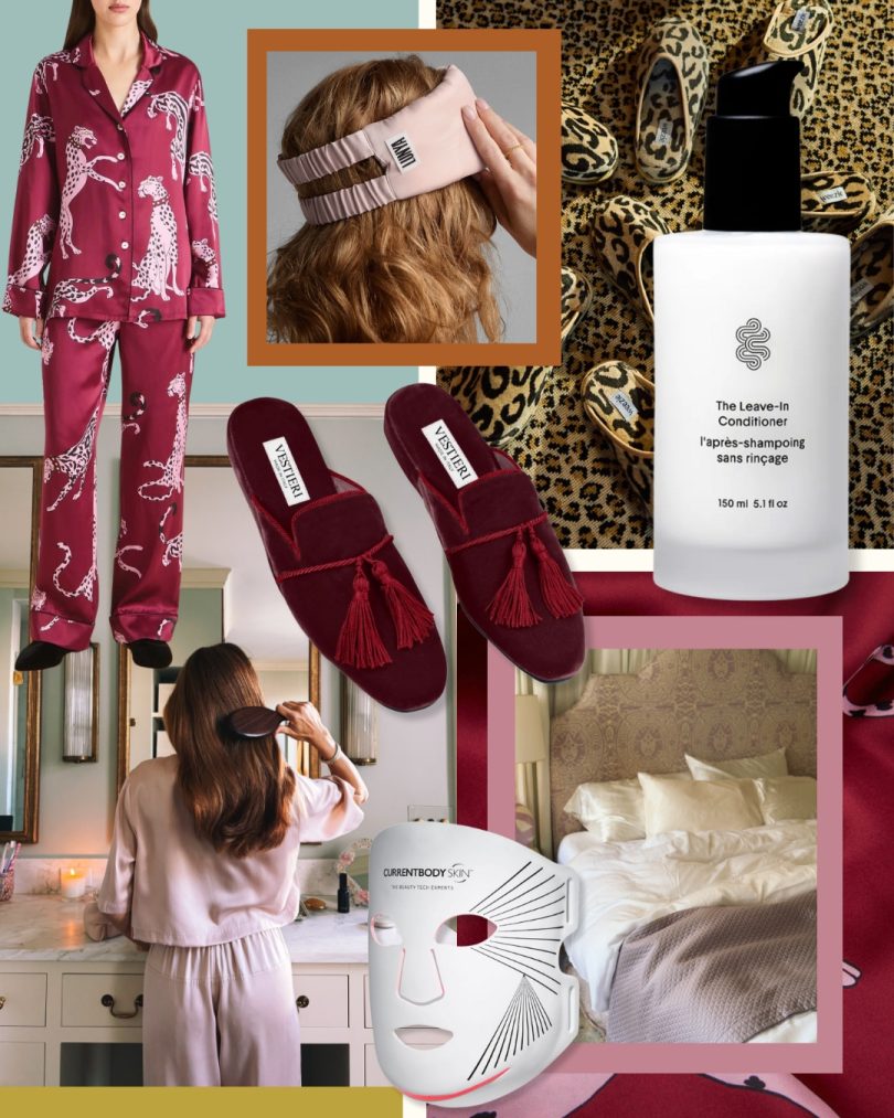 Keep finishing details minimal. A makeup towel set for nighttime cleansing, a brush within reach, or a hand or nail treatment used while winding down completes the setup without extending the evening. Add a silk heatless curling set for easy overnight curls.